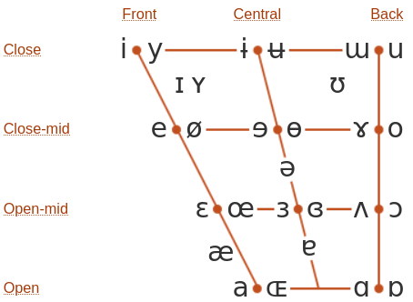 where the aeiou correspond to graphemes and also kind of the ipa phonetic symbols.