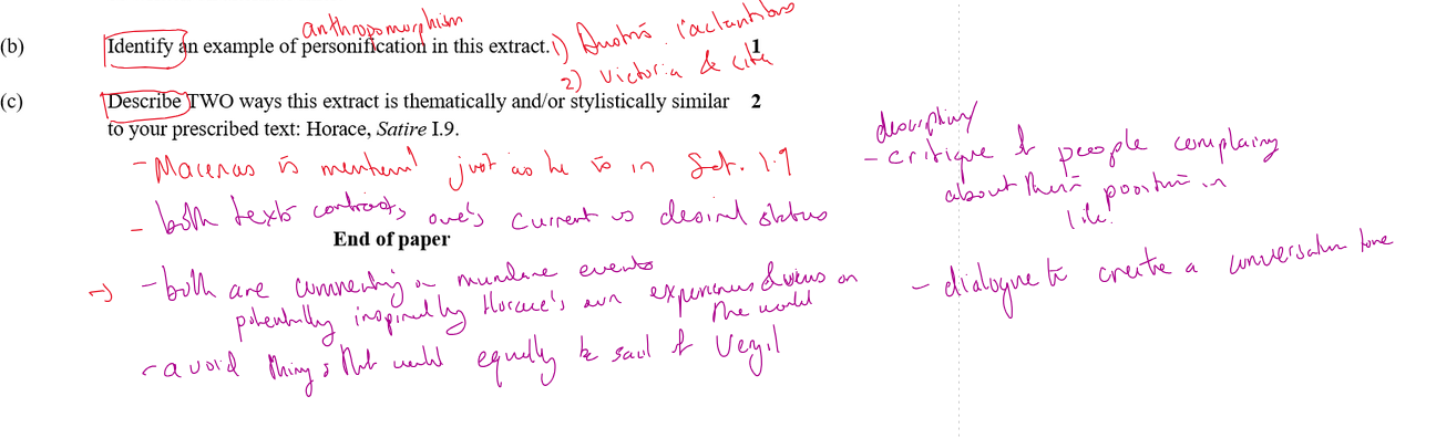 - describe TWO ways this extract is thematically and/or stylistically similar to your prescribed text: Horace Satire I.9